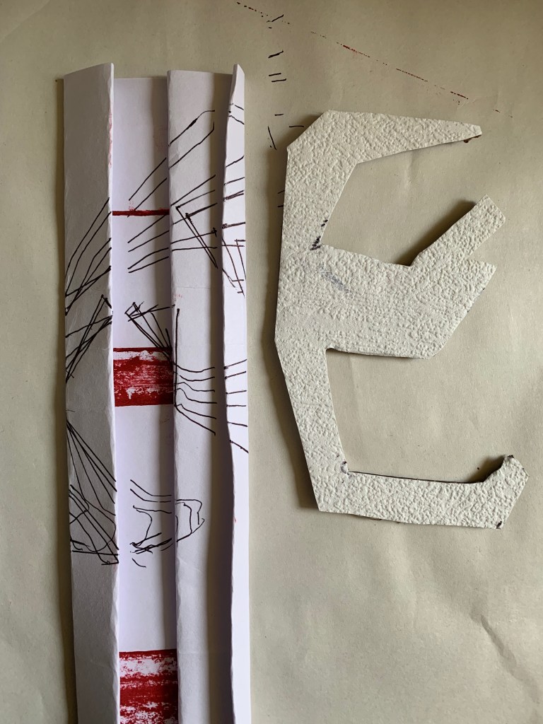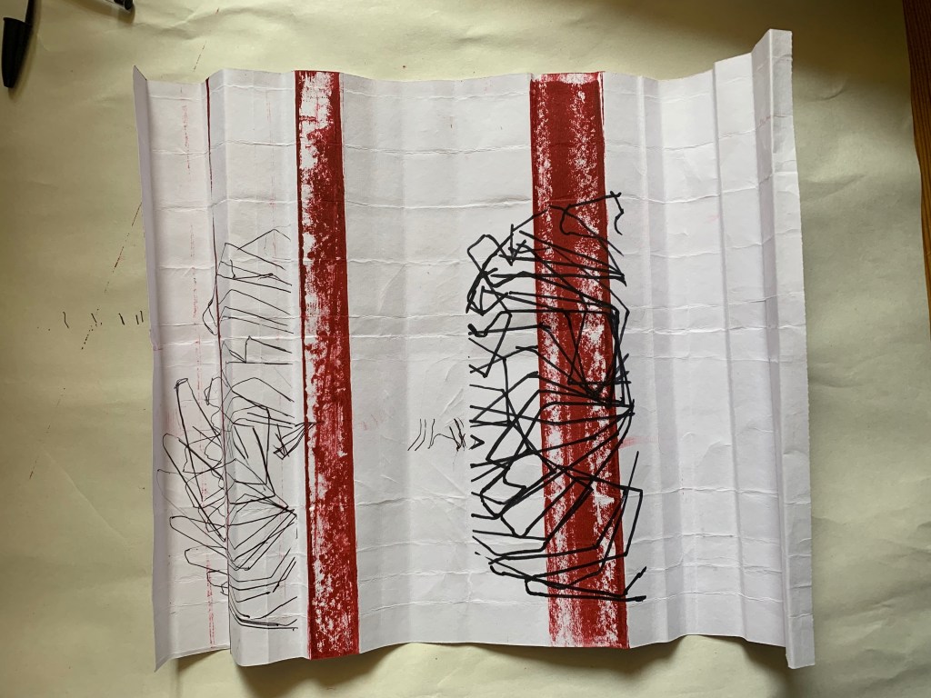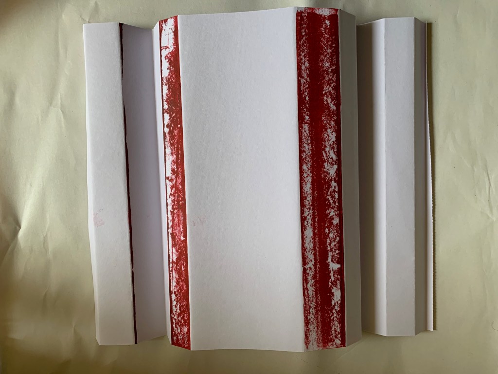 Continuing to build on my influence of the studio space, I wanted to take my folded prints and frottage of the space further. The fixture and fittings have sculptural qualities in themselves and have the linear elements I am being drawn to in my work. I therefore wanted to take a print of the radiator and create a three dimensional sculptural piece that could be presented in my group critique.