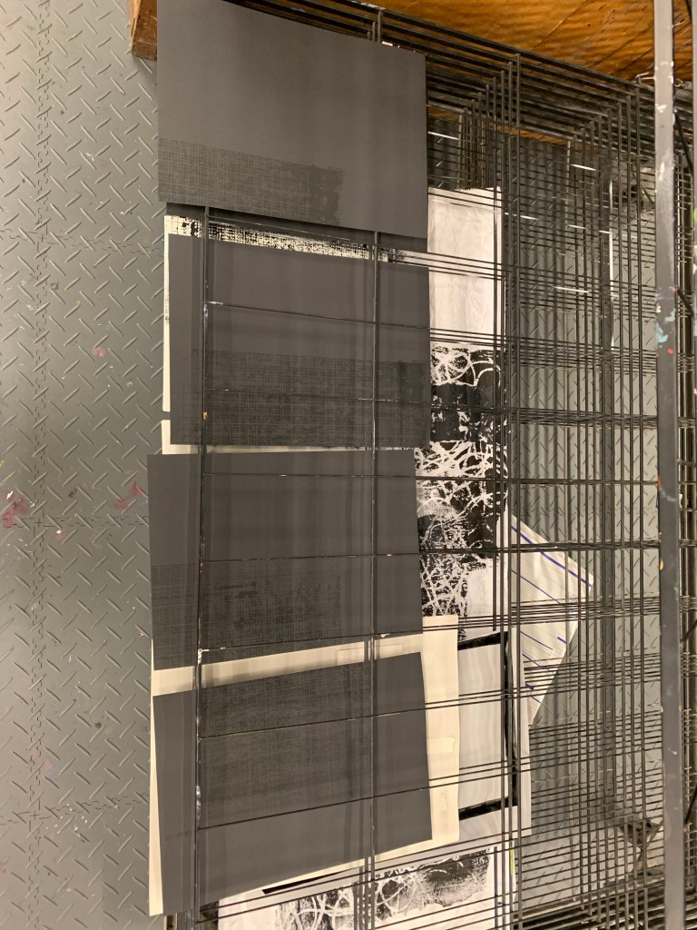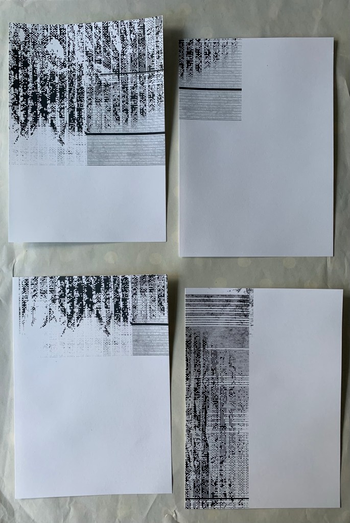 Something I have been developing further in my practice is the disruption of the surface of my prints. Printing across a number of arranged sheets of paper at the same time yielded great results. There was that magic moment when the sheets of paper were removed from each other, creating a distinct gap and fragmentation of the imagery.