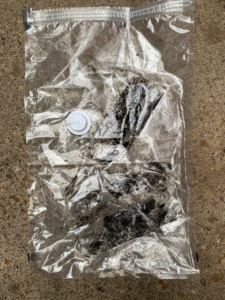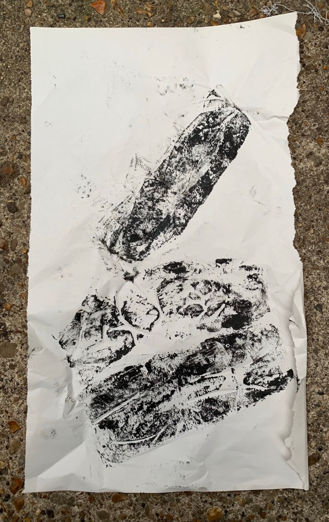 Following on from my vacuum packed branches and rubble displayed in my silent crit. I wanted to further experiment with vacuum packing to see if I could create a print by inking sections of a tree branch. This could be viewed as a more traditional approach, with the introduction of ink and paper. It was mentioned at my crit if I had considered using ink in the vacuum bag to make an impression, therefore, it was something I wanted to try.