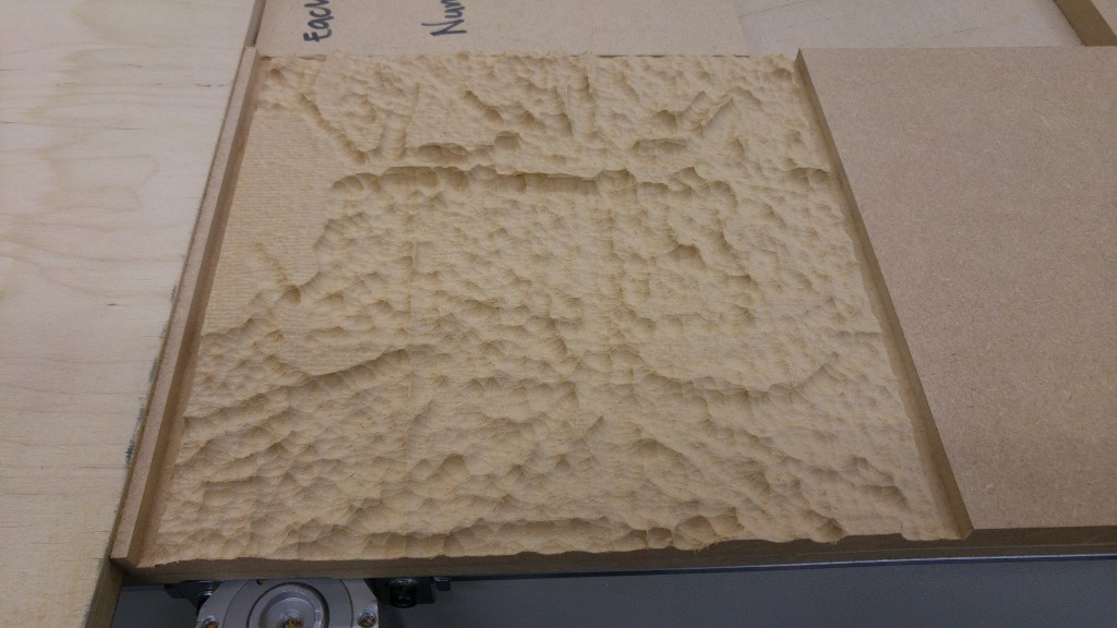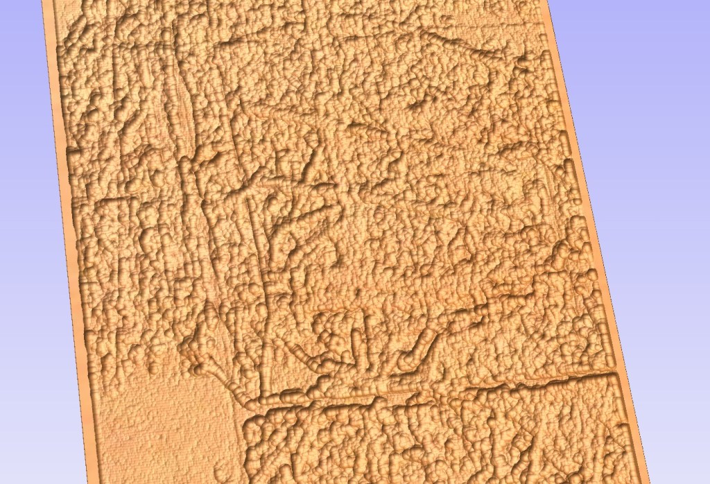 I have taken sections from my prints that focus on the physical marks I have made and turned these into illustrator files. When discussing the images with the technician, the files were too complex to make using the CNC router due to the amount of texture and overlaying elements to the work. I went away and worked on the files in Adobe Illustrator to turn the images into vector files. We were getting somewhere now, however the programme that runs the router would not match up all the linear elements and would not be able to route the image. After much discussion and experimentation with the files we managed to come up with a solution by using two different router head tools. The programme was able to read and distinguish the various layers that were to be routed and new files were made. A central cut would be made in the MDF panel using a standard routing tool then a V-shaped tool would be used for the rest of the image. Another issue was that the plates would take too long to route as one panel could take over 12hrs. This was where an element of negotiation and compromise came into play with the technician. I adapted my design to reduce the width and depth of the routed marks and adjusted the design so that there was more of the plate surface left. By making these changes the average time to route each panel was four hours. This was a great and informative experience for me as proved how important planning was and building a good working relationship with the technician was to get the work made. This was a piece of work that was being developed throughout the year where I went to the technician to establish what the requirements were in terms of file format, lead times and availability. All my images were planned and prepared, where I had a firm idea of what I wanted to be routed and how I saw the MDF plates being finished.