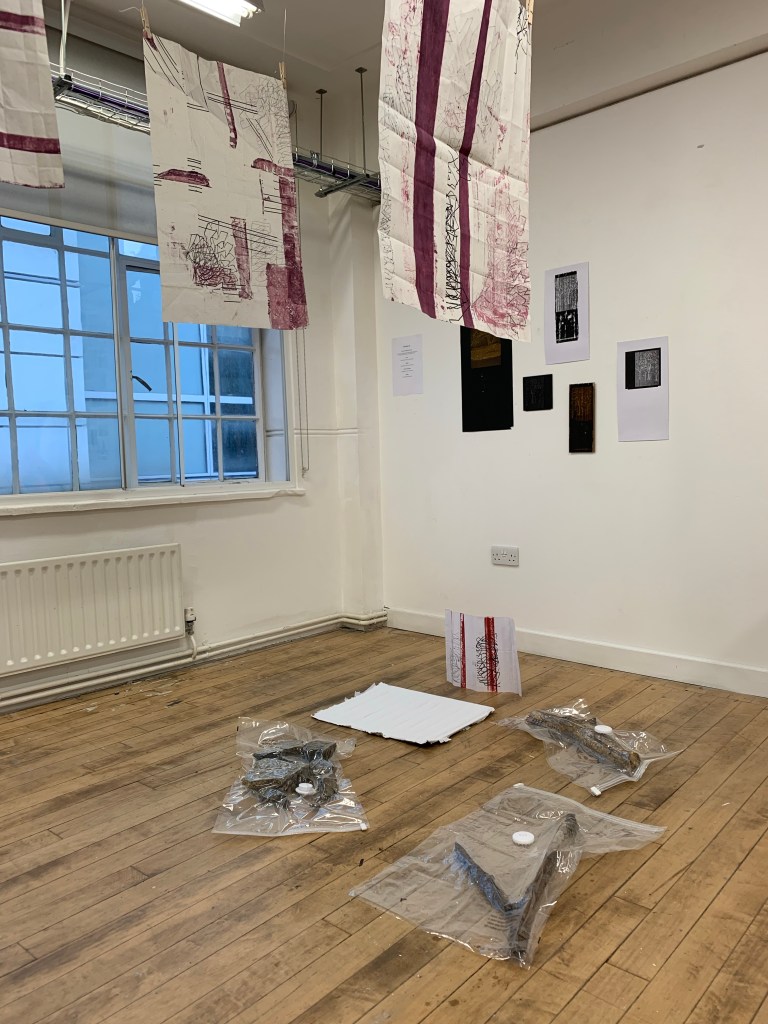 Most of my time has been spent in the print studio which meant my work was not always visible in the studio. The crits were a great marker in my project development to evaluate my work and present the various components surfacing. I treated these opportunities along with my test exhibition to create mini exhibits which would ultimately inform how my work evolved and would be displayed in my degree show.
