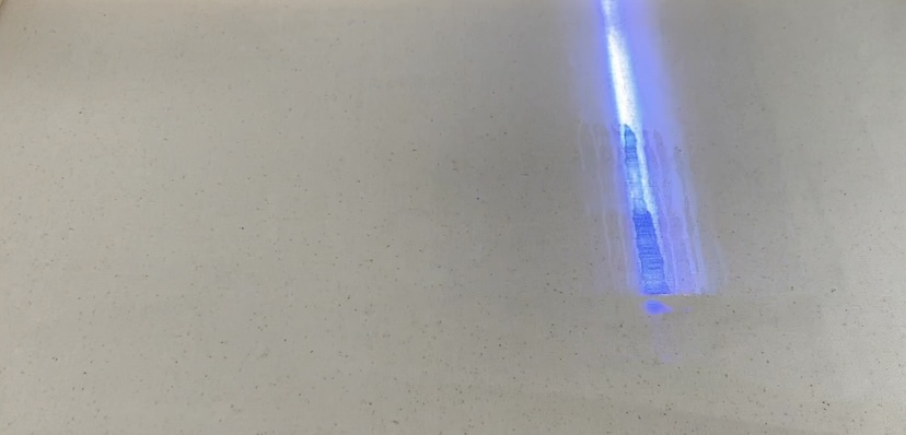 My instincts told me to open the photocopier cover and observe what happened, the whole screen was covered so would be safe to look at the print in motion. What I saw was amazing and I had to record the result. The light shining through the surface of the print and moving across the image projected the imagery on the other side. This process of experimentation was the work in itself but required a mode of translation so that this could be presented to the viewer. I therefore filmed the motion of the copier scanning the surface and the resulting image as the mechanism traveled to read the information of the canvas. I then went on to make a lopped film where I stitched together the same scene at a reduced frame rate to produce the below video. My intention was to then present this on a monitor that would be positioned on the floor with other works as part of my test exhibition.