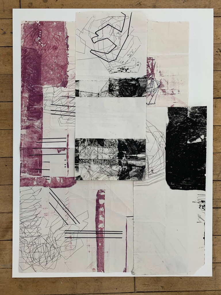 From the outset of my major project I have wanted to exploit the marks I have made, using them as a point of departure where new works can be made. An area I wanted to investigate was the relationship between printmaking and drawing which was also going to be the subject of my dissertation, therefore, connecting both works together. This quickly changed as I navigated my dissertation studio classes and the decision made to disregard printmaking; I was constantly trying to shoehorn the concept into the other areas that were beginning to surface. However, an element of this has been retained in my major project where I endeavour to have my human made marks constructed via digital means. This has lead me to explore various ways my imagery can be used, whether that be by photocopying, digital manipulation or isolating various elements. What can be seen seen throughout my work are the elements that surfaced initially and used as a foundation to explore the journey between physical and digital processes. What I have created is an archive as such that I can mine and use to incorporate and develop in my work. I treat my prints like paintings and it is no surprise that painting has moved into my practice. I love to blur the boundaries and mix different mediums into my output.