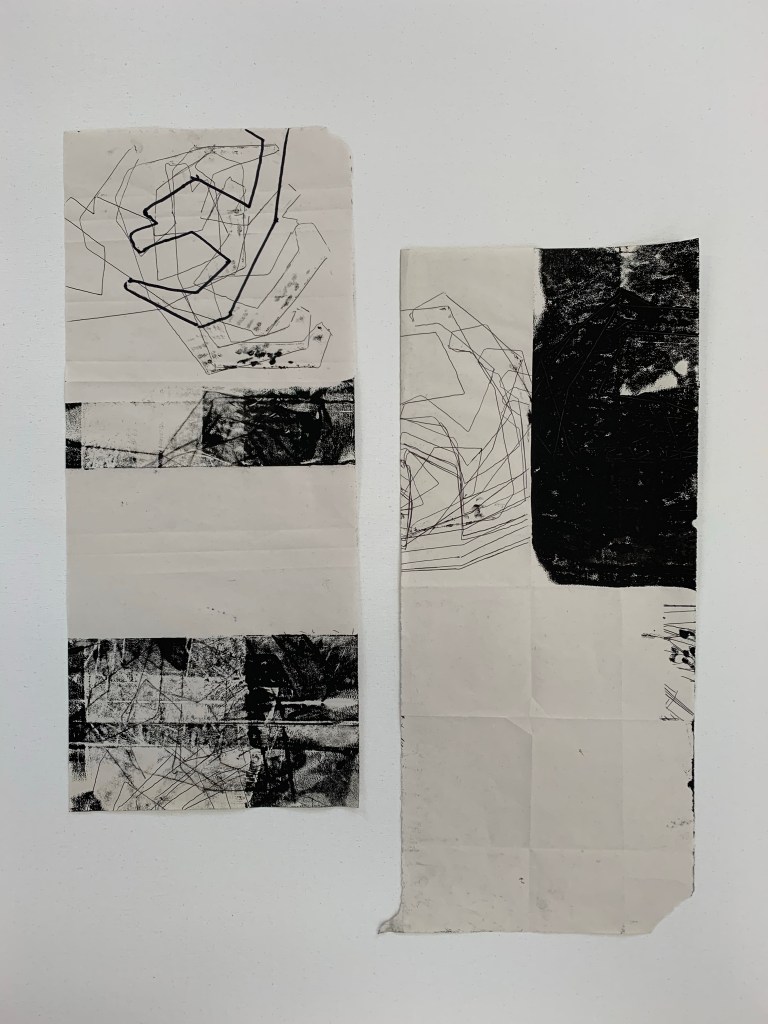 I have begun to adhere these fragments of past prints made in the beginning of the year to canvas which I have then painted over using diluted oil paint. The intention for these experimental works are not to necessarily be end works but steps in the process where the intention is then to photocopy them. These works many be incorporated into my end of year show as they prove to be important parts to my practice and signify my position with regard to what prints can be.